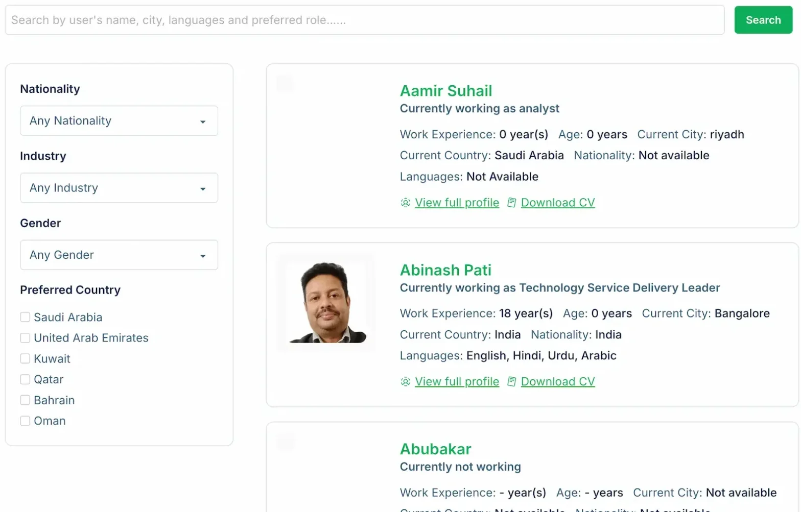 Discover exceptional talent today. Try our CV bank for free, by simply typing your specific hiring needs below